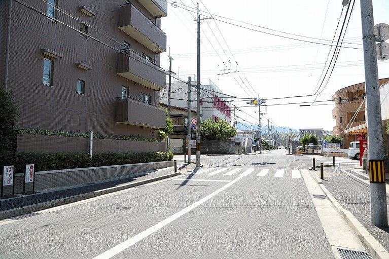 ④ ドラックストアとミスタードーナツの間の道へと進みます